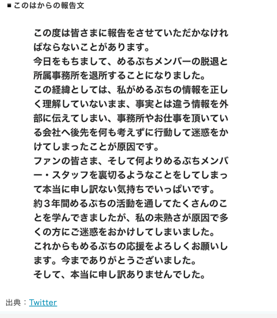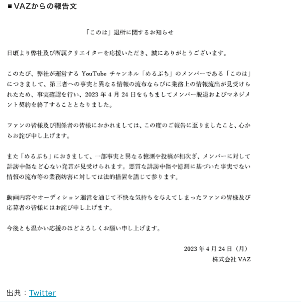 2023年4月24日に廣住このはさんの脱退が発表され、SNSではすぐに話題になりました。