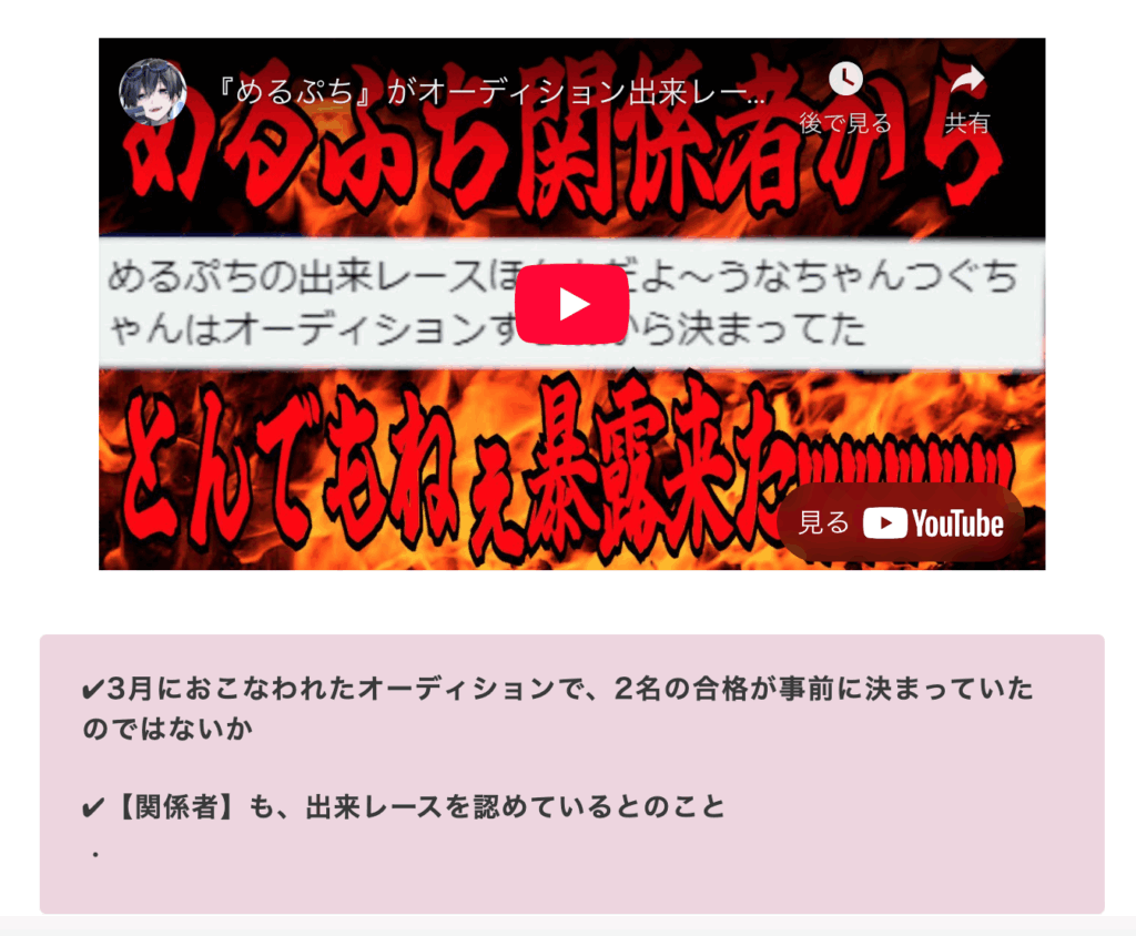 このはさんがめるぷちを脱退する大きな理由のひとつが、オーディションに関する情報の流出でした。
